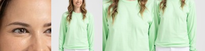 3.69 oz., 50 cotton, 50% modal, 30 singles; High-end modal fabric; Twist neck/arm/bottom hems; Fashion look; Tear-away label; Made in a w.r.a.p. certified factory;