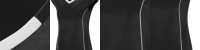 - Seamless 1x1 ribbed collar with double-needle coverstitching on front neck