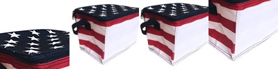 made of 600D material; Holds 6 cans; 22.5” adjustable navy strap; Insulated with lead-free peva lining; Large white print area on open front pocket; 8.5” x 6” x 6”; Stars and stripes pattern; Each year 5% of Net Operating Income is given to help support a host of social service organizations supporting the homeless, children and veterans and in need. The company supports The Greatest Gift Catalog Ever and their partner agencies. For more information on how to help support these great causes please go to WWW.TGGCE.ORG;