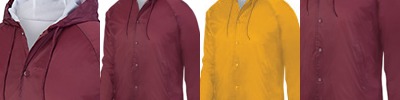 Outer shell of 100% nylon taffeta ; Lined with 100% polyester brushed tricot ; Water-resistant; Woven label; Snap front; Hood with drawcord ; Raglan sleeves for maximum mobility; Front pockets; Elastic cuffs; Open bottom;