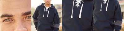 - Hood with flat braid drawcord