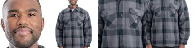 7 oz., 100% cotton yarn-dyed flannel; Medium-weight quilt-lined taffeta; Two chest pockets with button closure; Button front closure; Classic fit; Adjustable snap cuffs; Front on-seam pockets;