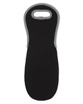 Neoprene 2.5mm wine tote holds and insulates one 750ml bottle.; Features soft grip handles, machine washable cold, drip dry and stores flat; 19" x 5" x .25"; Non-branded label/tag ;