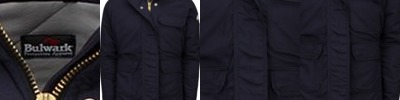 - Two-way, separating, heavy-duty Nomex®, taped brass zipper, fully covered with insulated storm flap, concealed snap closure
