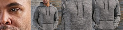 - 13.5 oz./yd² (US) 22.5 oz./L yd (CA), 70/30 ring spun cotton/polyester fleece,100% cotton face yarns on solid colors, 20 singles