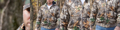 - Blended cotton/polyester face on Granite Heather, Natural Heather, Vintage Camo