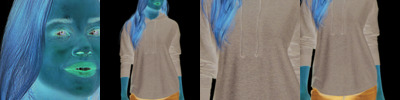 - Three-piece hood with elastic binding at opening