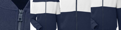 - Contrast-color elastic cuffs and bottom hem