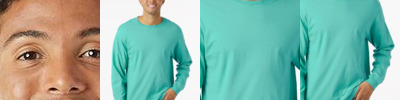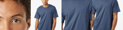 4.2 oz., 30 combed ring-spun singles; Super Soft 100% Combed Ring-Spun Cotton; Tear-Away Label; American fabrics, assembled in Mexico;