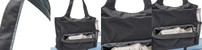 - Reusable tote folds into pouch for storage in bags, glove compartments and pockets for shopping on the go
