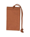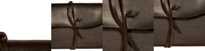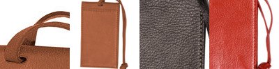 • Holds ID/business card behind clear PVC viewing window on back panel hidden by leather flap