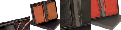 • Glazed bonded calfskin Leather portfolio accented with a faux suede spine