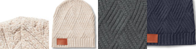 - Beanie knitted on a trellis pattern Includes a faux Leather Thermo PU patch and measures 196"w x 118"h