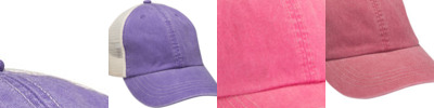 100% cotton mid-weight twill crown & visor; 100% nylon mesh back panels; 100% cotton mid weight twill crown & visor, 100% nylon mesh back panels; 6-panel, unstructured, low-profile; Snap back plastic closure matching back mesh color; Heavy enzyme wash; Self fabric matching color sweatband; Seam tape matches mesh back; Matching color eyelets and pre-curved visor;