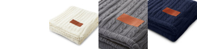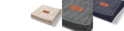 • Double layer blanket made out of heathered Rayon Fiber Polyester and Nylon blend knitted on a trellis pattern and a coz.y Polyester lambswool Sherpa (180 GSM) backing and faux Leather Thermo PU patch