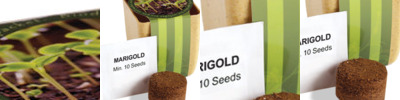 • Each set includes a biodegradable planter, a compressed soil wafer and a marigold seed packet