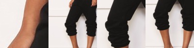 - Elastic, self-fabric waistband and self-fabric cuffs