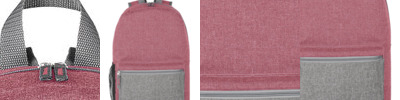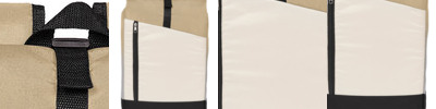 • Large front zippered pocket; two self-fabric side bottle pockets