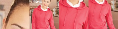 - Contrast melange fleece on hood, shoulders, and sleeves