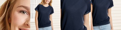 4 oz., 30 singles; 60% combed and ringspun cotton, 40% polyester lightweight jersey; Relaxed fit ; tear away label;