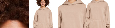10 oz./yd², 80/20 cotton/recycled polyester fleece Heather Grey is 70/30 cotton/recycled polyester Three-end heavyweight fleece Oversized fit Double-needle topstitch on all seam Two-panel hood No drawcords 1x1 ribbing at cuff and waistband Under 5% shrinkage Front pouch pocket Tear away label