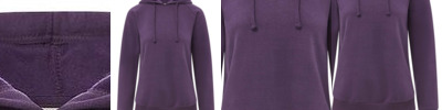 - 2x2 rib knit binding along hood front, cuffs and waistband
