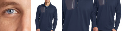 Smooth-faced fleece with a subtle grey print gives this 1/2-zip a sleek performance look. Reverse coil zipper, open cuffs and an open hem. Welded zippered chest pocket, contrast Eddie Bauer heat transfer logo on left sleeve. Made of 7.7-ounce, 95/5 poly/spandex.