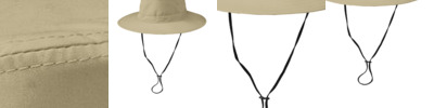 - Features: Adjustable cord at crown, clip-on and adjustable drawcord