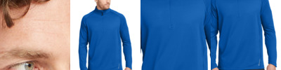 By mixing heather with a solid color and adding reflective hits, this moisture-wicking pullover has a technical look plus plenty of stretch for easy movement.