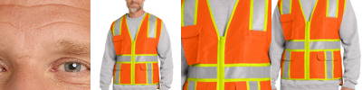 Two-tone contrast fabric under the reflective tape makes this breathable mesh vest stand out on the jobsite.