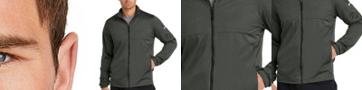 This slightly brushed, textured, breathable cover-up is a comfortable layering option for the office or afterhours. The design includes a notched, zip-through collar, contrasting black Vislon® zipper and an open drop tail hem. The contrast Swoosh logo is embroidered on the left sleeve. Made of 6.3-ounce, 100% polyester fabric.