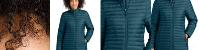 - 3.5-ounce, 100% polyfill insulation diamond quilted hood and sleeves