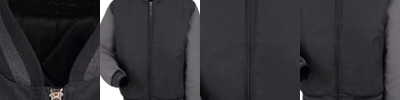 12 oz., 100% cotton quarry washed Boulder Cloth™ canvas; 3 oz., polyfil nylon-quilted lining; Corduroy collar, placket and chest pocket trim; Bi-swing back for full range of motion; Drop-tail hem; Ribbed gator cuff sleeves; Triple-needle stitching; Heavy-duty YKK metal zipper with easy-grab zipper pull;