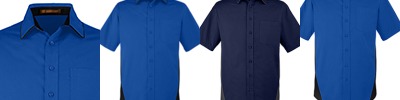 4.5oz/yd2 / 155 gsm ; 55% cotton, 45% polyester twill; Wrinkle-resistant; Stain-release; Contrast collar details; Chest pocket with pen slot; Dyed-to-match pearl buttons; Contrast side vents; Industrial Laundry Tested to 50 washes; Carbon neutral style in partnership with Green Story third party verified carbon offset program. For more information click on carbon neutral link above MSRP. ;