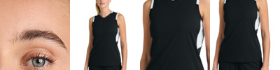 - Mesh back panel, under arm inserts, and colorblocked mesh sleeve insets