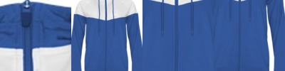 - Self-fabric collar with full length locking zipper Two front zipper pockets with headset opening