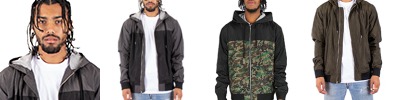 3 oz., water-resistant 100% nylon shell; 1.8 oz., 100% polyester lining; 17.2 oz. 2x1 100% polyester rib; Raglan sleeve for maximum mobility; Dyed-to-match buttons; 2 striped rib on neck, cuff, and waist;