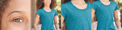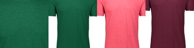 3.8 oz., 50% polyester/38% cotton/12% rayon tri-blend knit; Tear away label; Crewneck; Set-in sleeves with rolled forward shoulder seam;