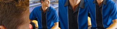 Two-tone bowler is made with polyester for easy care, and rayone for smooth moving comfort.